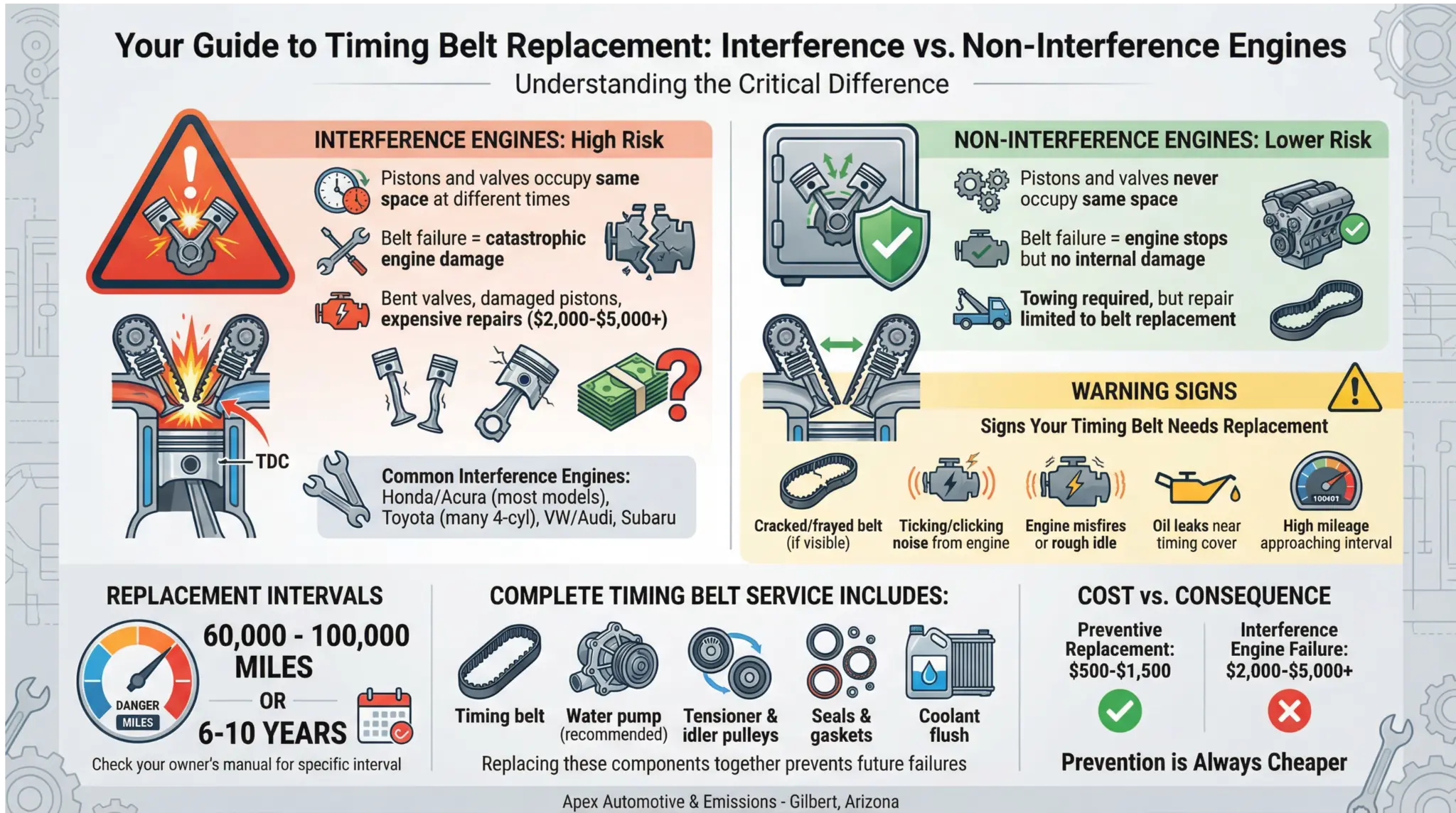 Trust Apex Automotive to protect your engine from avoidable damage with expert timing belt replacement calibrated to Arizona’s unique conditions and your vehicle’s specific needs.